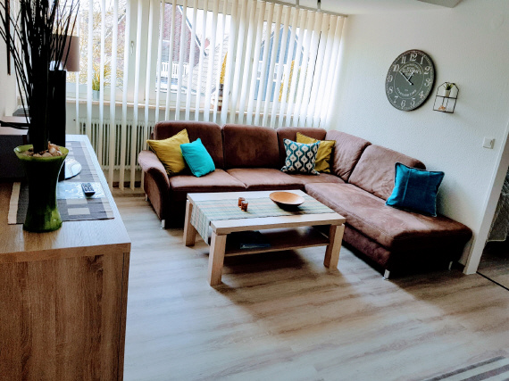 Die Wohnung ist ca. 50 qm groß, verfügt über 1 Elternschlafzimmer 1 Kinderschlafzimmer, neu renoviertes Bad mit DU/ WC, das modern eingerichtete Wohn/Eßzimmer lädt zur Entspannung ein. Die Küche ist seperat. |